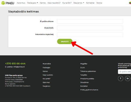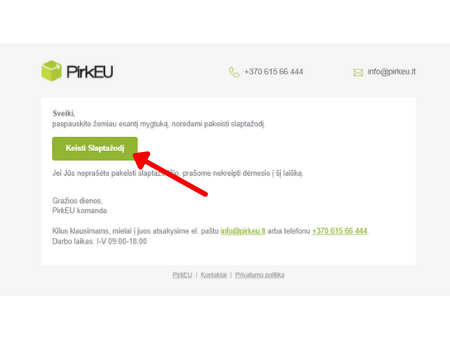 - Savo el.pašto dėžutėje atidarykite Pirkeu laišką „SLAPTAŽODŽIO PRIMINIMAS" ir spauskite „KEISTI SLAPTAŽODĮ“